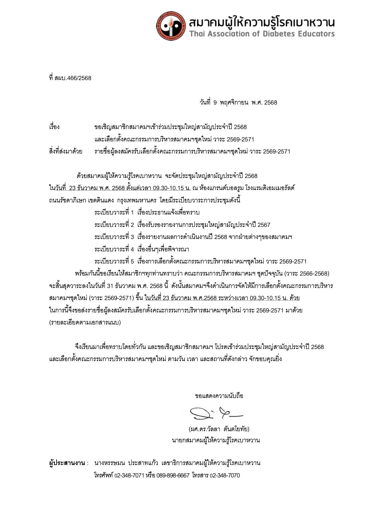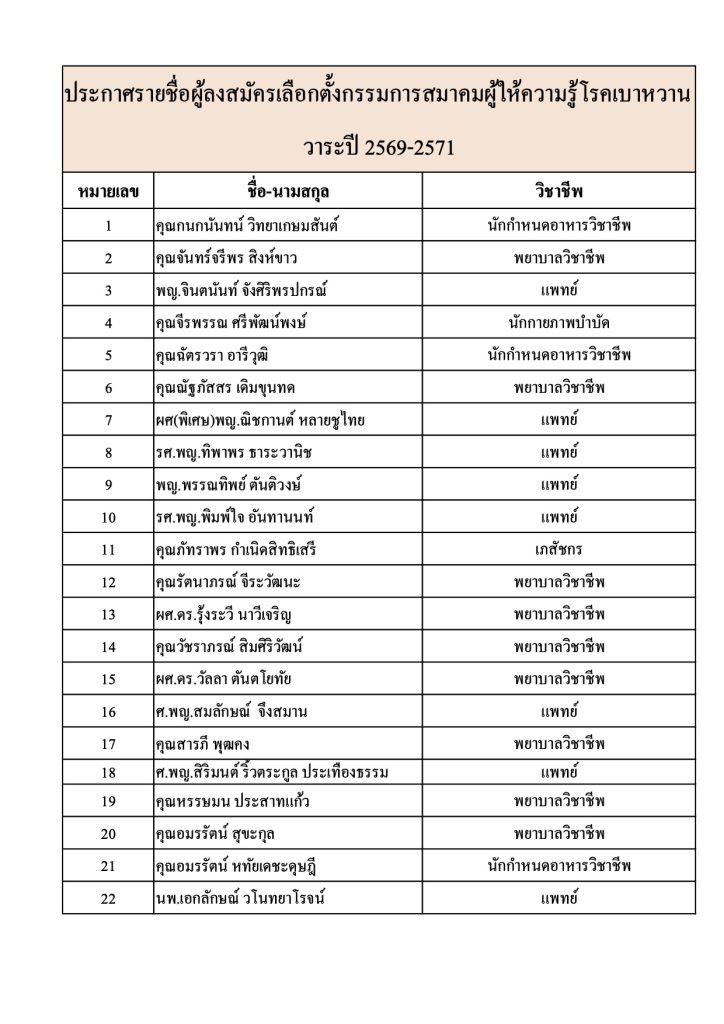 รายนามคณะกรรมการสมาคมผู้ให้ความรู้โรคเบาหวาน